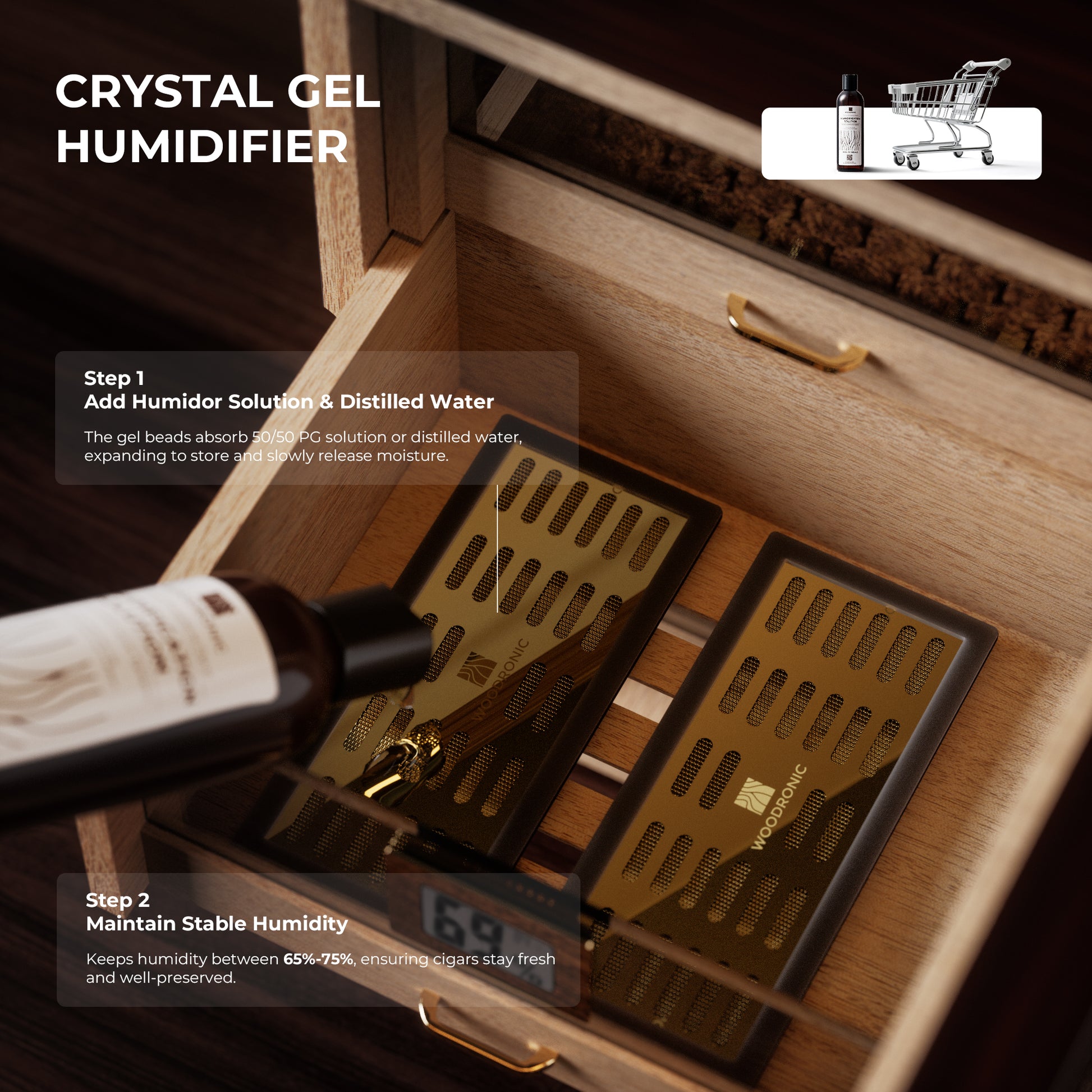 Crystal Gel Humidifiers: High-grade and non-toxic, also easy to handle, releases moisture to maintain the RH at 70%, keeping your wooden cabinet in optimal humidity