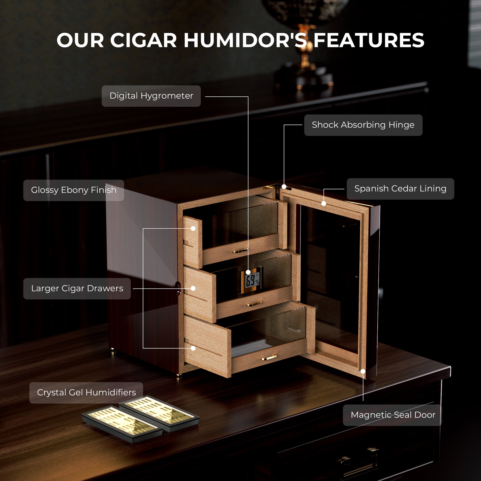 3 Larger Drawers perfectly fit more cigars and those of larger ring gauges, as well as your electric humidifiers.