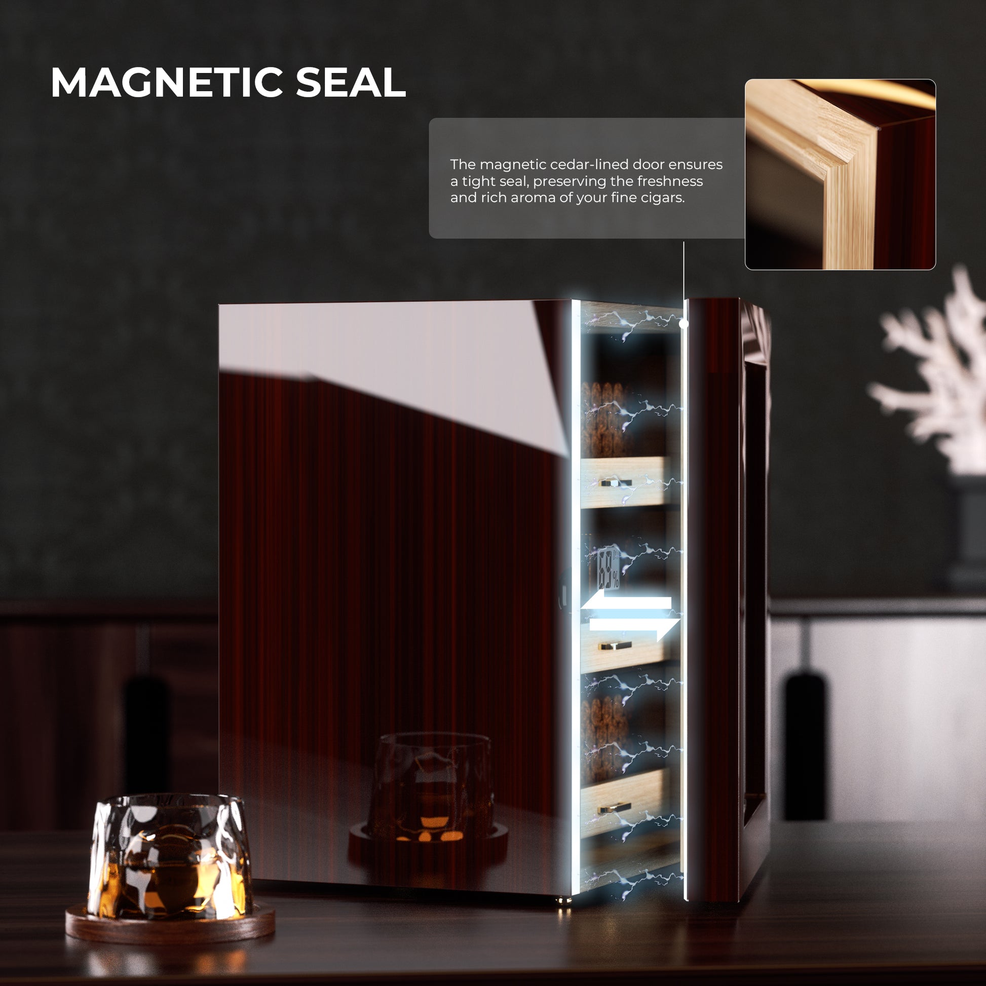 Magnetic Seal: The magnetic cedar-lined door ensures a tight seal to maintain freshness and aroma for your premium collection