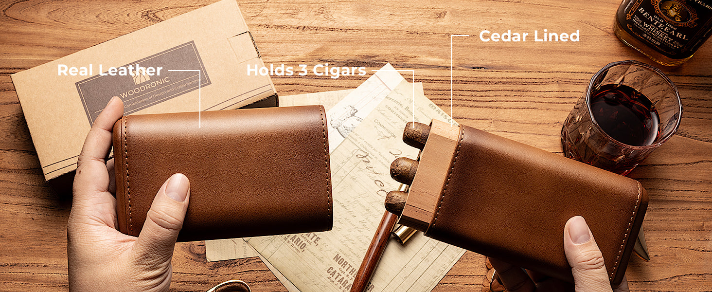 Solid Spanish Cedar: Lined with premium Spanish cedar wood, this travel cigar case enhances cigar freshness, locks in natural aromas, and elevates your cigar experience.