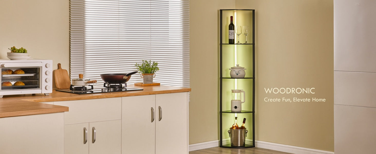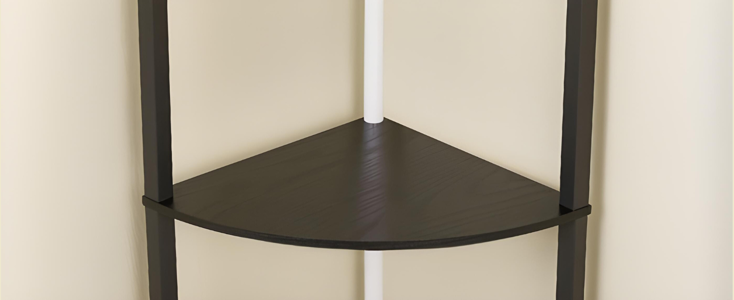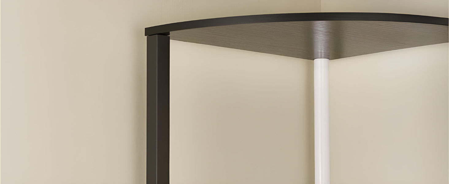 The corner shelf's sturdy metal frame ensures durability, stability, and a sleek modern look.
